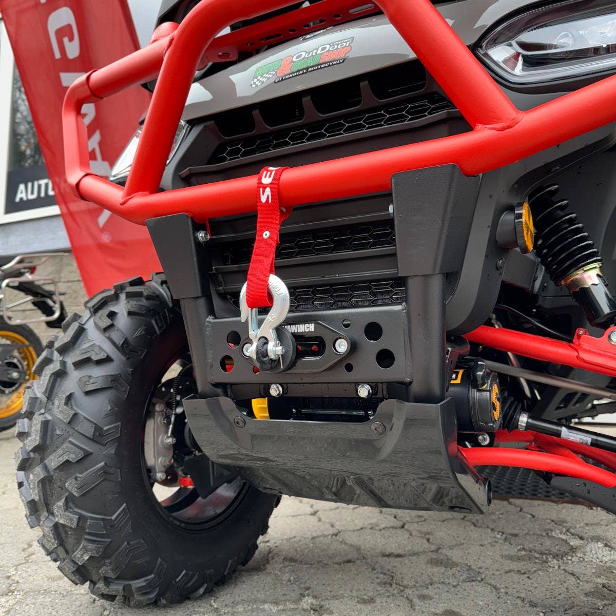 Lepší grip a ovladatelnost v hluboké vodě, bahně a extrémních podmínkách. Hliníkové protiskluzové stupačky zajišťují bezpečnou a stabilní oporu, umožňují lepší kontrolu čtyřkolky a zabraňují sklouznutí nohy při jízdě vestoje a po zadních.