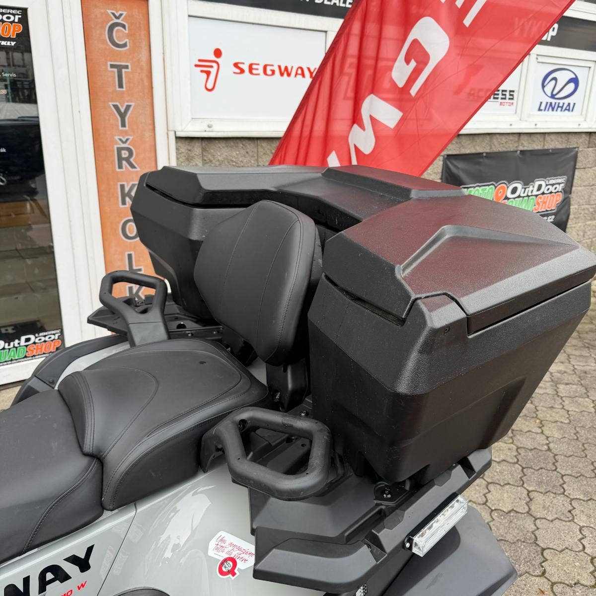 Na výletě i při práci je dostatek úložných prostorů prostě k nezaplacení. Příruční schránka před sedadlem pojme vše, chcete mít po ruce. Velký zadní box je navíc uzamykatelný.