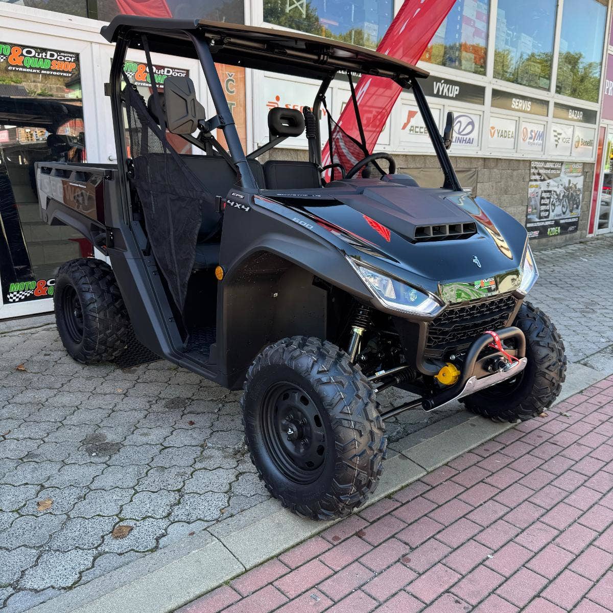 Elektrický naviják 4500 lbs, inteligentní elektrický posilovač řízení, TFT digitální přístrojová deska, tažné zařízení, nastavitelný volant, anatomicky tvarovaná sedadla s hlavovou opěrkou, tříbodové pásy, přední ochranný rám, zadní ochranný rám, bezpečnostní sítě na straně řidiče i spolujezdce, pevná střecha, velká sklopná korba, 14" disky.