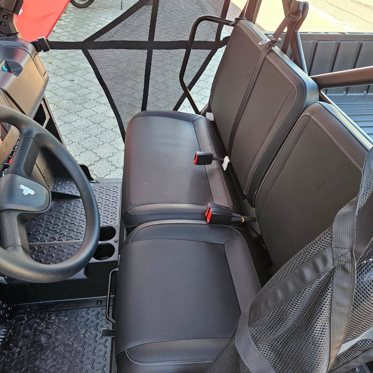 Elektrický naviják 4500 lbs, inteligentní elektrický posilovač řízení, TFT digitální přístrojová deska, tažné zařízení, nastavitelný volant, anatomicky tvarovaná sedadla s hlavovou opěrkou, tříbodové pásy, přední ochranný rám, zadní ochranný rám, bezpečnostní sítě na straně řidiče i spolujezdce, pevná střecha, velká sklopná korba, 14" disky.