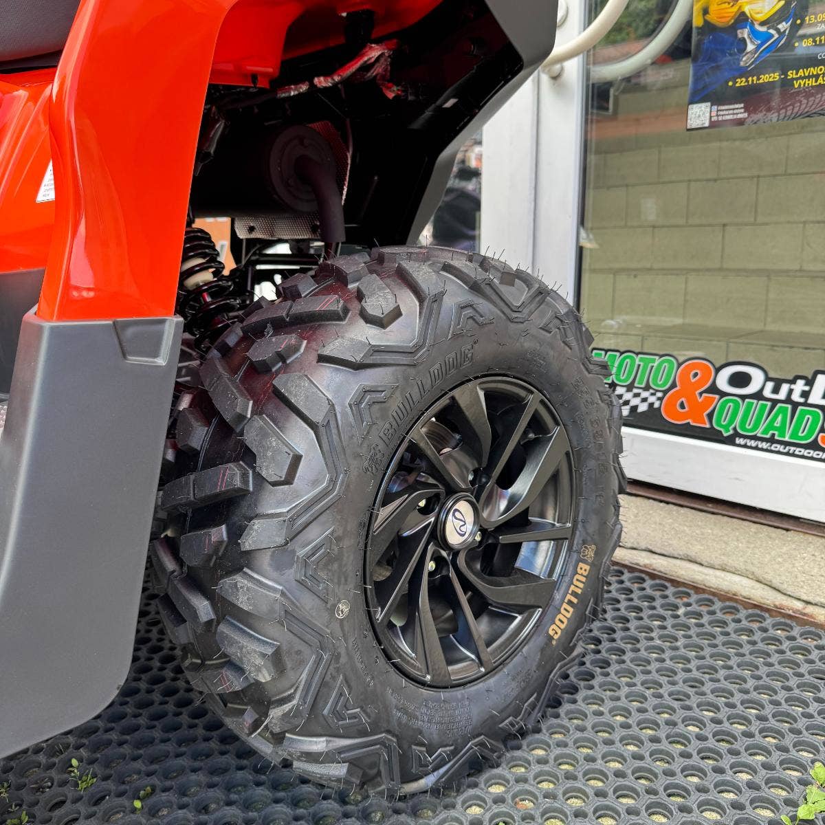 Nezávislé zavěšení kol, vysoké zdvihy pérování a elektricky přepínatelný pohon 2x4 / 4x4 s uzávěrkou dělají z této čtyřkolky skutečného experta do terénu. V běžném provozu oceníte lehké ovládání režimu 2x4, zatímco v náročném terénu využijete plný výkon 4x4. Uzávěrka předního diferenciálu vás podrží i v nejtěžších pasážích. Agresivní 25" pneumatiky Bulldog si poradí i s hlubokým blátem.