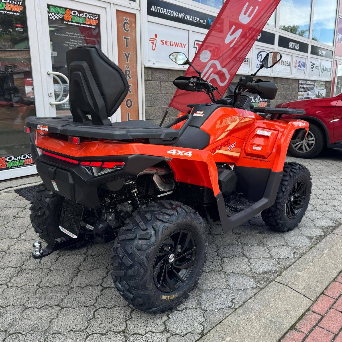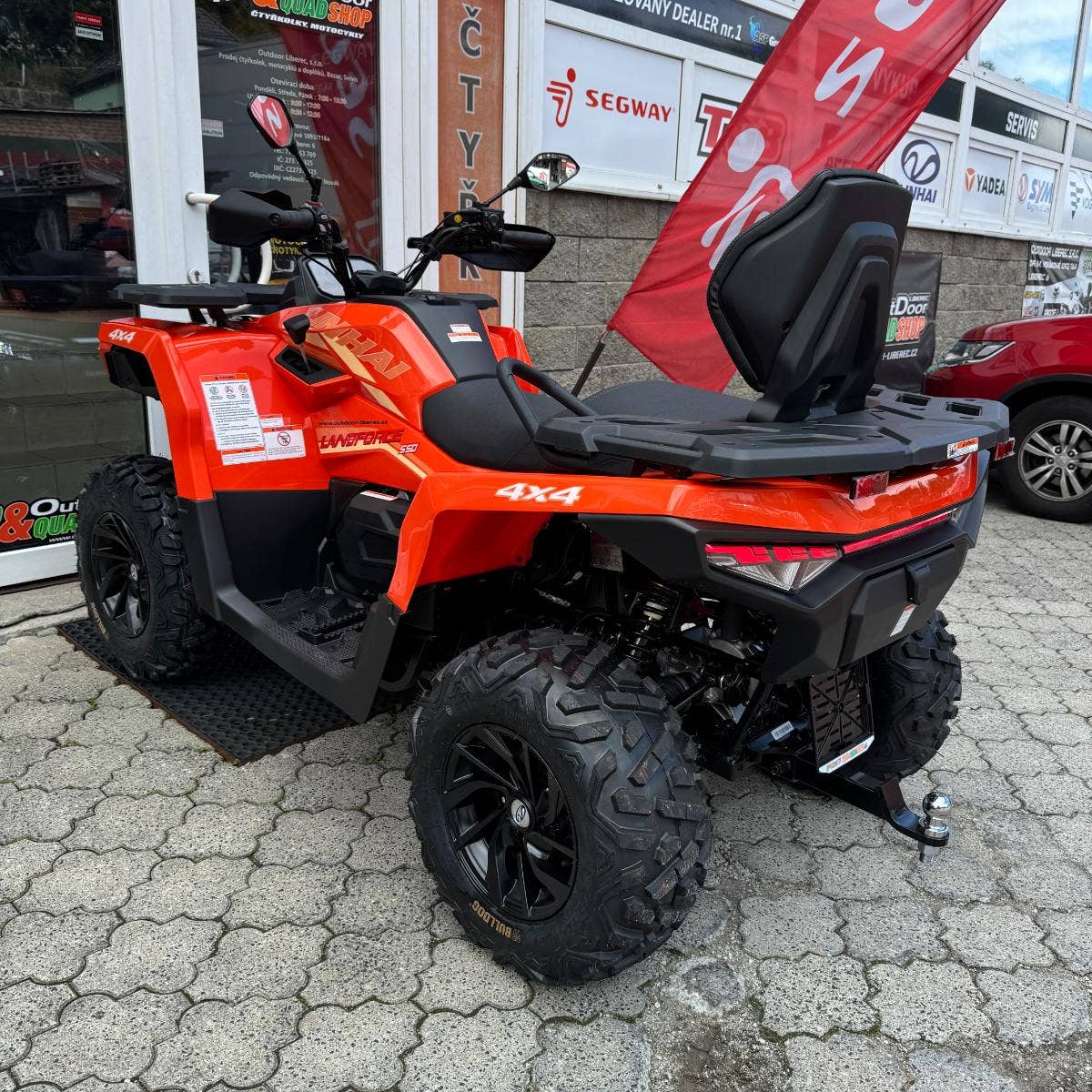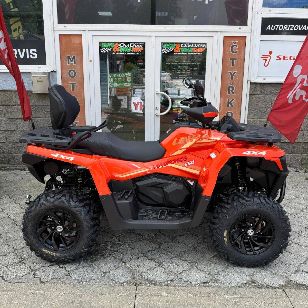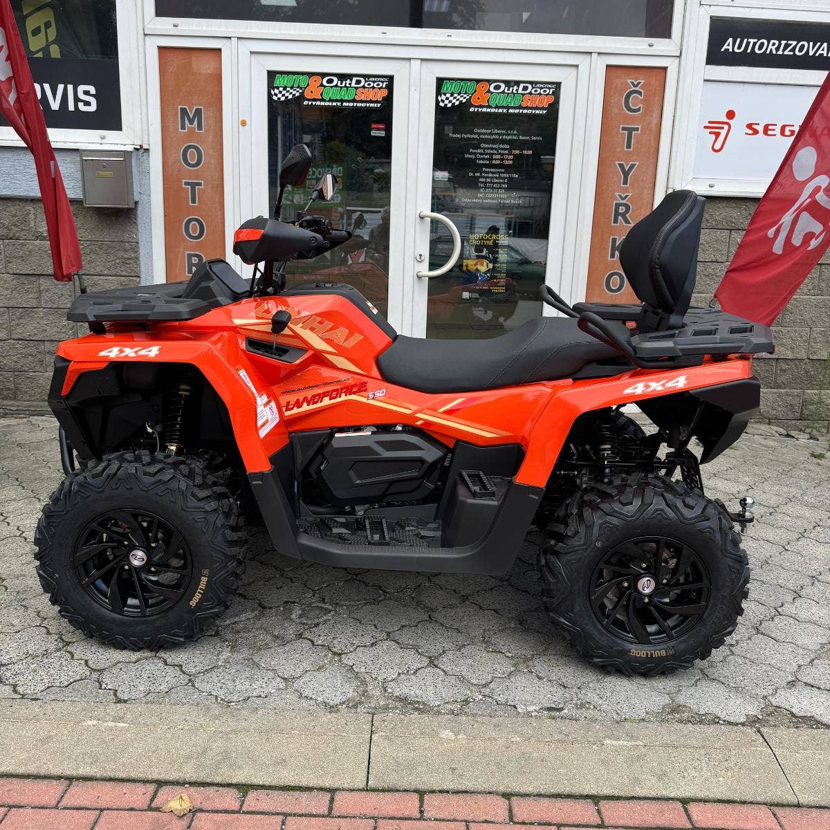 inhai Landforce 550L nabízí mimořádně bohatou výbavu, ve které nechybí atraktivní 12" litá kola se značkovými 25“ pneumatikami Bulldog, elektrický naviják 3000 lbs, homologované tažné zařízení, plnobarevný 7“ TFT displej. Vše, co si chcete vzít s sebou, pojmou kompozitní nosiče a praktické úložné schránky. Ve výbavě najdete i chrániče rukou, 12 V zásuvku, USB port nebo pohodlné vyvýšené sedadlo spolujezdce.