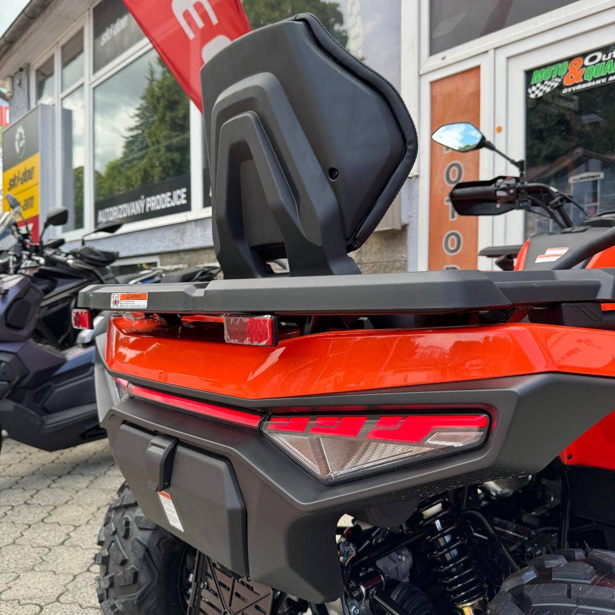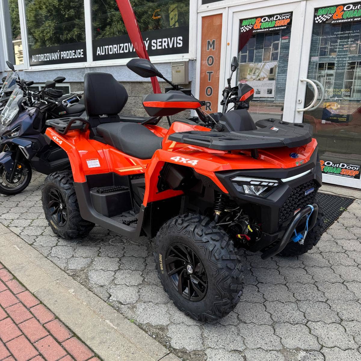 Elektrický naviják 3000lbs s nylonovým lanem, homologované tažné zařízení, 12" designová ALU kola, značkové 25" pneumatiky Bulldog, kompozitní nosiče vpředu a vzadu, kryty páček a rukou, Full-LED osvětlení, plnobarevný 7“ TFT displej, 12 V zásuvka, USB port, samostatné vyvýšené sedadlo spolujezdce s opěrkou zad, madla s neklouzavým povrchem