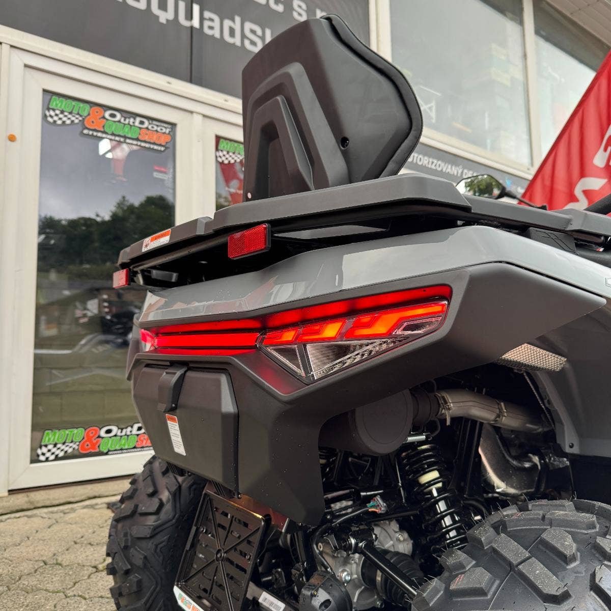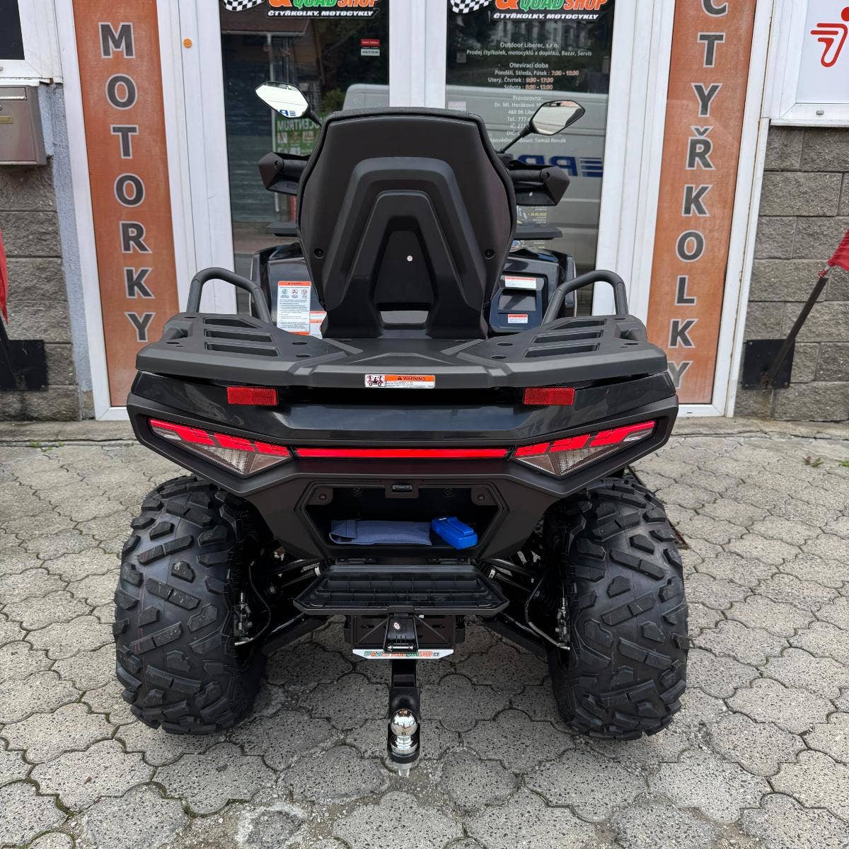 Elektrický naviják 3000lbs s nylonovým lanem, elektrický posilovač řízení EPS, homologované tažné zařízení, 12" designová ALU kola, značkové 25" pneumatiky Bulldog, kompozitní nosiče vpředu a vzadu, kryty páček a rukou, Full-LED osvětlení, plnobarevný 7“ TFT displej, 12 V zásuvka, USB port, samostatné vyvýšené sedadlo spolujezdce s opěrkou zad, madla s neklouzavým povrchem