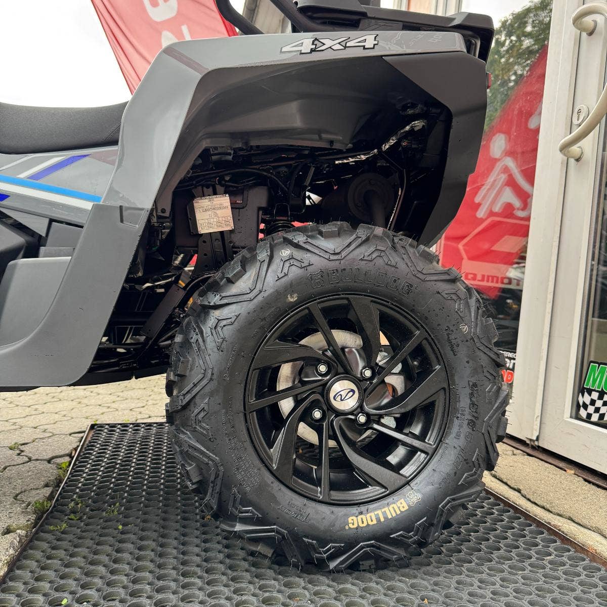 Nezávislé zavěšení kol, vysoké zdvihy pérování a elektricky přepínatelný pohon 2x4 / 4x4 s uzávěrkou dělají z této čtyřkolky skutečného experta do terénu. V běžném provozu oceníte lehké ovládání režimu 2x4, zatímco v náročném terénu využijete plný výkon 4x4. Uzávěrka předního diferenciálu vás podrží i v nejtěžších pasážích. Agresivní 25" pneumatiky Bulldog si poradí i s hlubokým blátem.