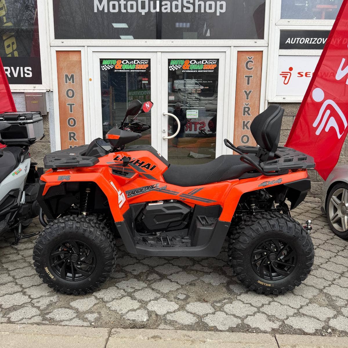 inhai Landforce 550L nabízí mimořádně bohatou výbavu, ve které nechybí atraktivní 12" litá kola se značkovými 25“ pneumatikami Bulldog, elektrický naviják 3000 lbs, homologované tažné zařízení, plnobarevný 7“ TFT displej. Vše, co si chcete vzít s sebou, pojmou kompozitní nosiče a praktické úložné schránky. Ve výbavě najdete i chrániče rukou, 12 V zásuvku, USB port nebo pohodlné vyvýšené sedadlo spolujezdce.