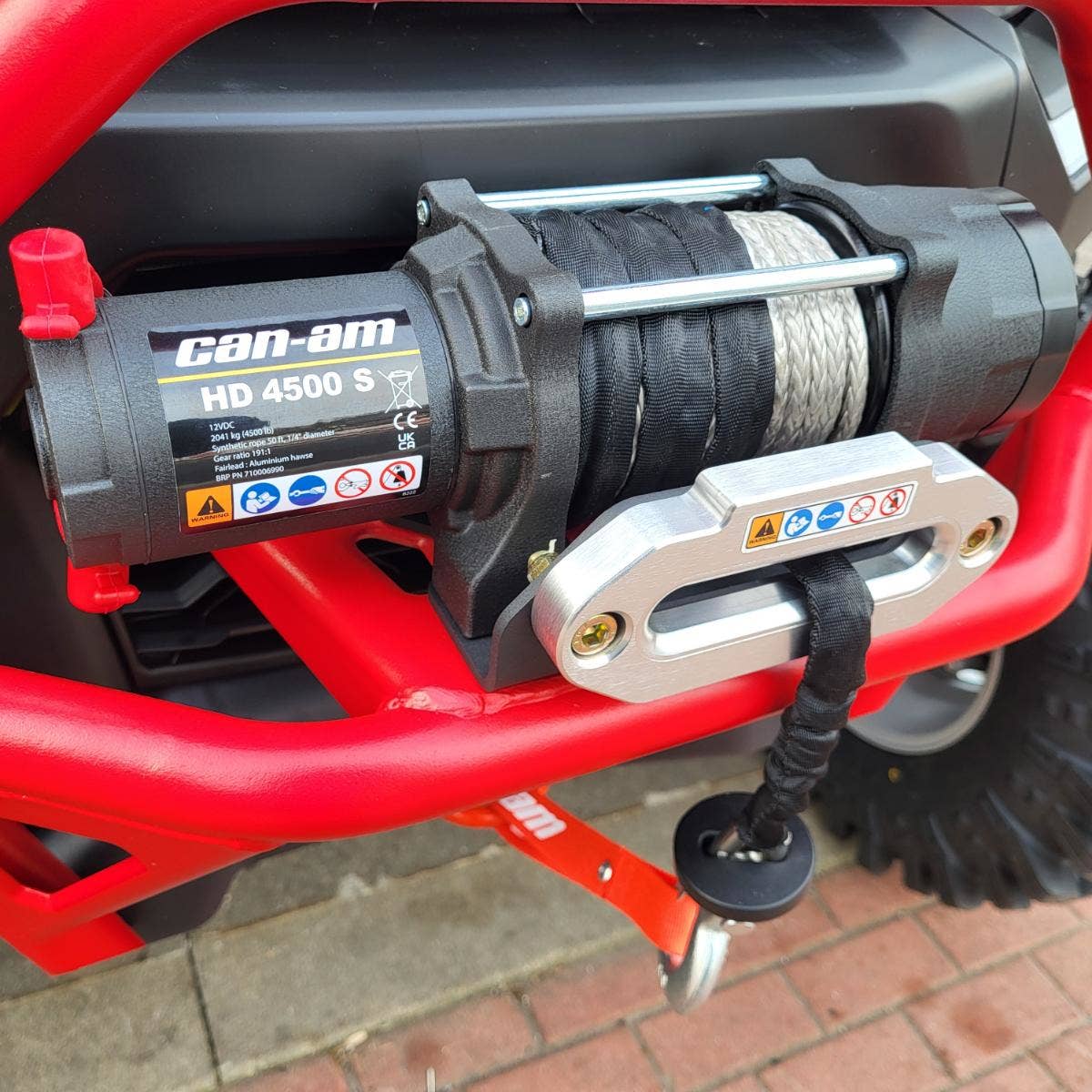 • Přemístěný naviják se syntetickým lanem a válečkovým vodítkem, kapacita 2041kg