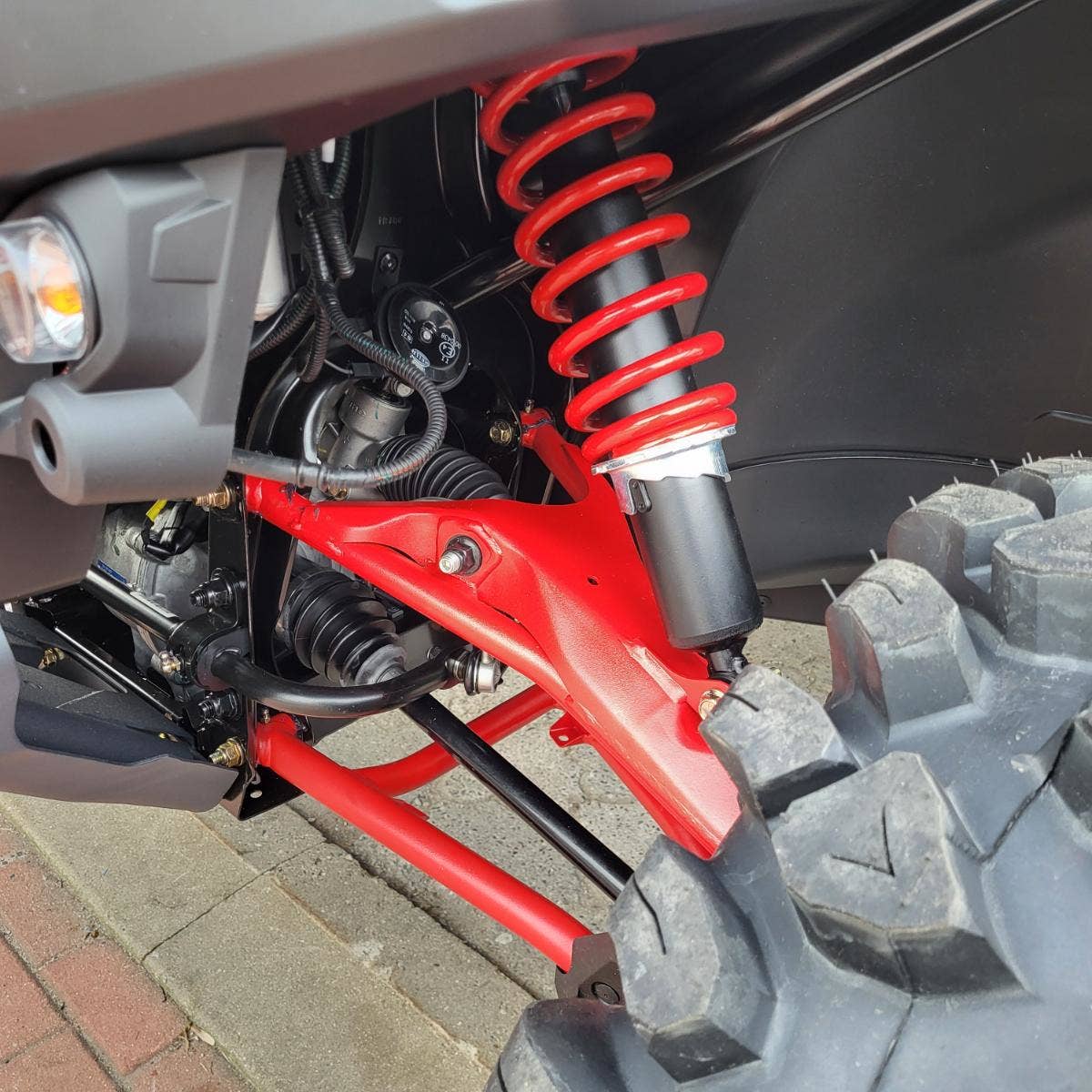 Přední zavěšení:  dvojité obloukové  A-rameno (30,5 cm) s kyvnou tyčí