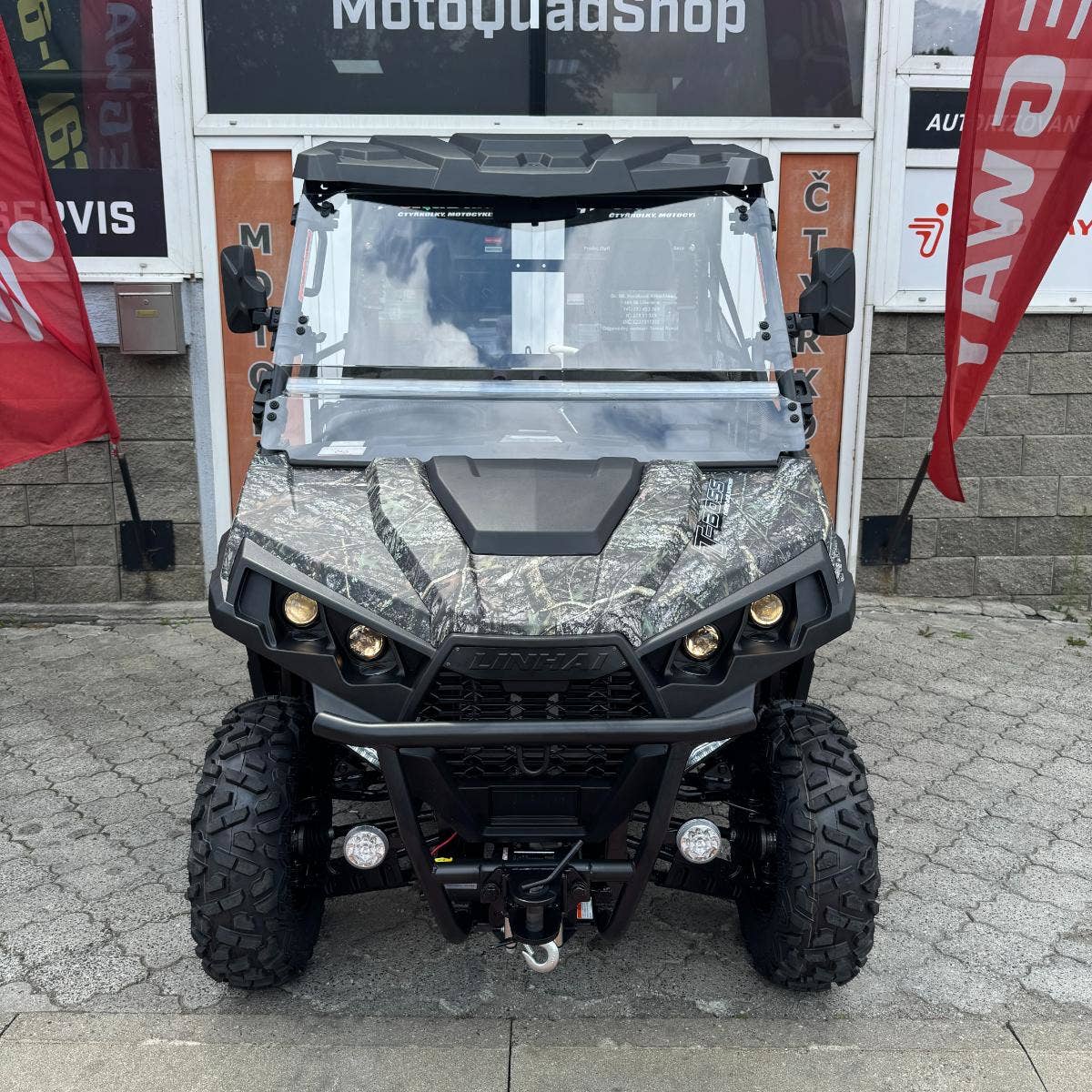I přes zcela bezkonkurenční cenu nabízí Linhai UTV 570 T-BOSS EPS bohatou výbavu již v základu. V ní nechybí pevná plastová střecha odolná UV záření, plnohodnotné čelní plexi, masivní přední ochranný rám, bezpečnostní sítě ve dveřích, madla pro spolujezdce, hlavové opěrky, tažné zařízení nebo elektrický naviják 3000lbs s dálkovým ovládáním.
