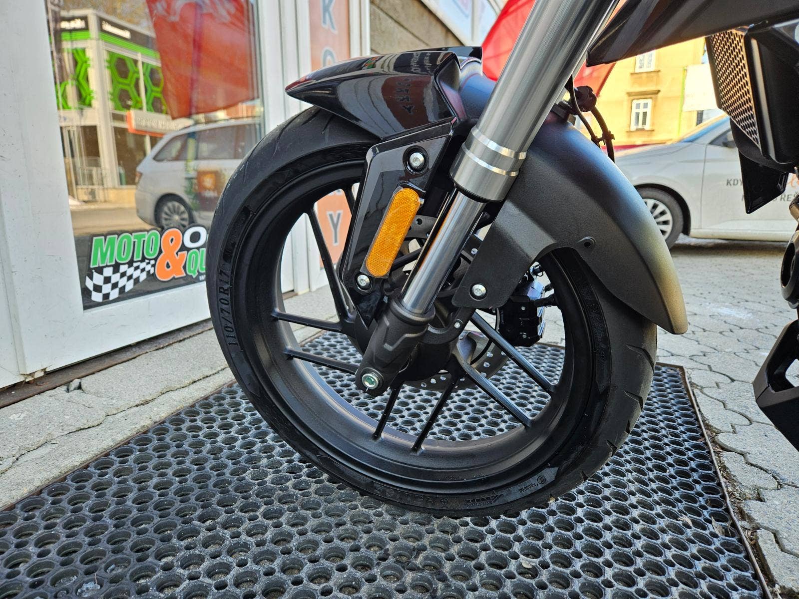 | Přední pneu | 110/70-R17, bezdušová |