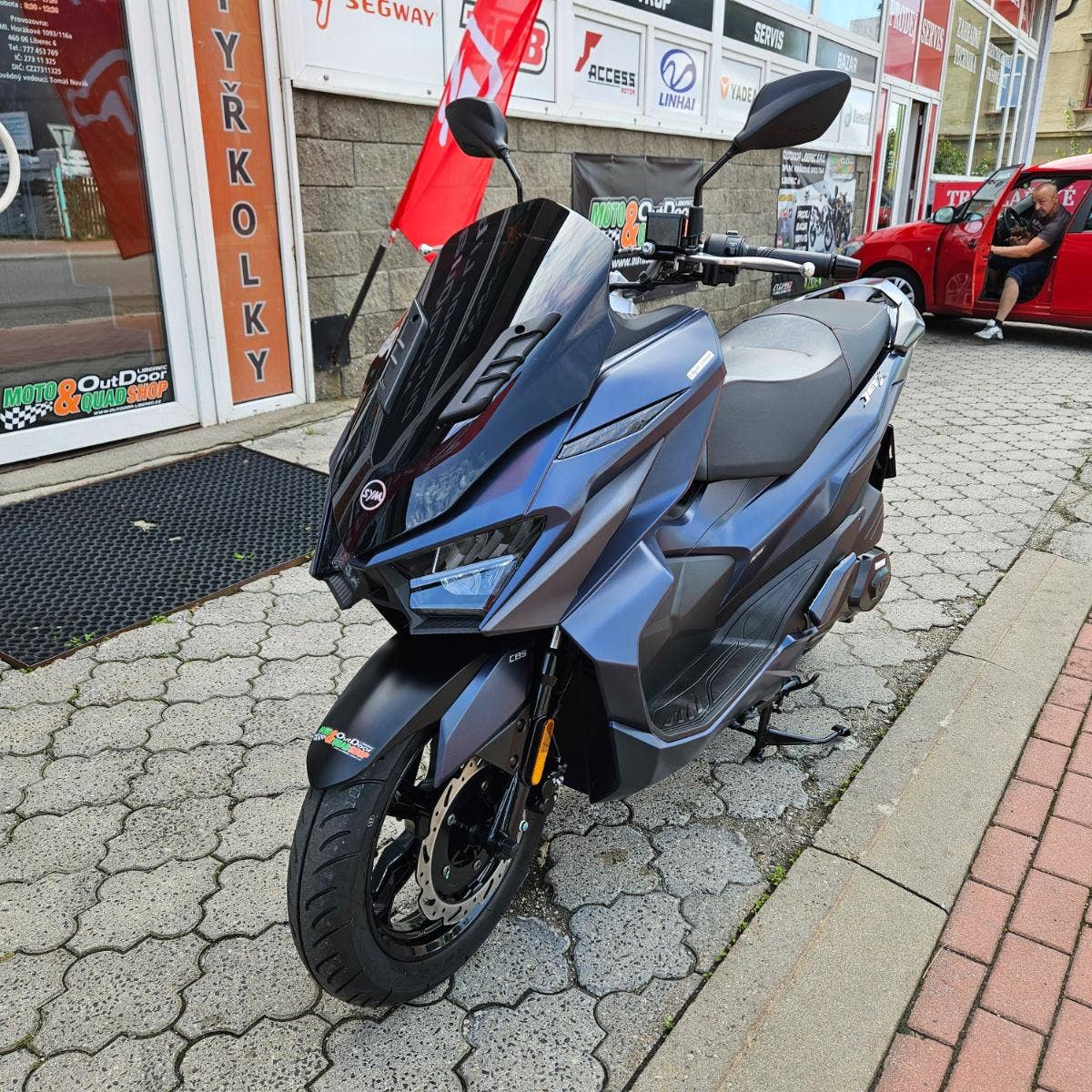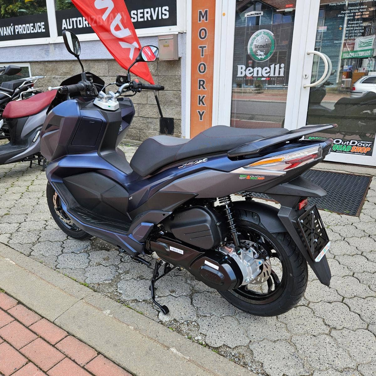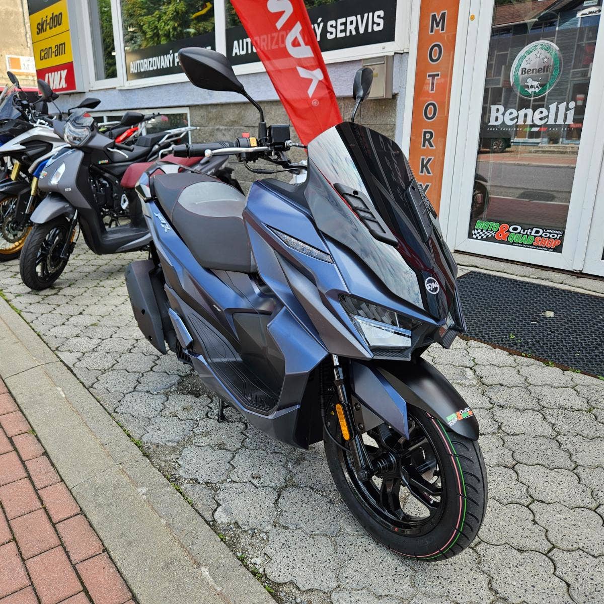 Nová vlajková loď oblíbené rodiny JET – SYM JET X. Skútr JET X je vybavený předním LED světlem, LED obrysovými světly, LED směrovkami a LED zadním světlem. Full LED osvětlení je nejen moderním a futuristickým designem, ale výrazně přispívá ke zvýšení bezpečnosti po čas jízdy. JET X používá bezklíčový systém pro pohodlnější jízdu. Speciální systém nahradil klíč pro přístup k zapalování. Startování skútru se tak stává lehčí a intuitivnější. Futuristická high-tech přístrojovka poskytuje stylově jednoduchost a všechny potřebné informace. Automatické stmívání zaručí viditelnost údajů v každých podmínkách. Samozřejmostí jsou úložné prostory pod sedadlem a v přední části kufru. Zadní část kufru je určena pro přilbu. JET X je vybavený nabíječkou Quick Charge 2.0, která zabezpečuje rychlejší dobíjení zařízení jako standartní USB.