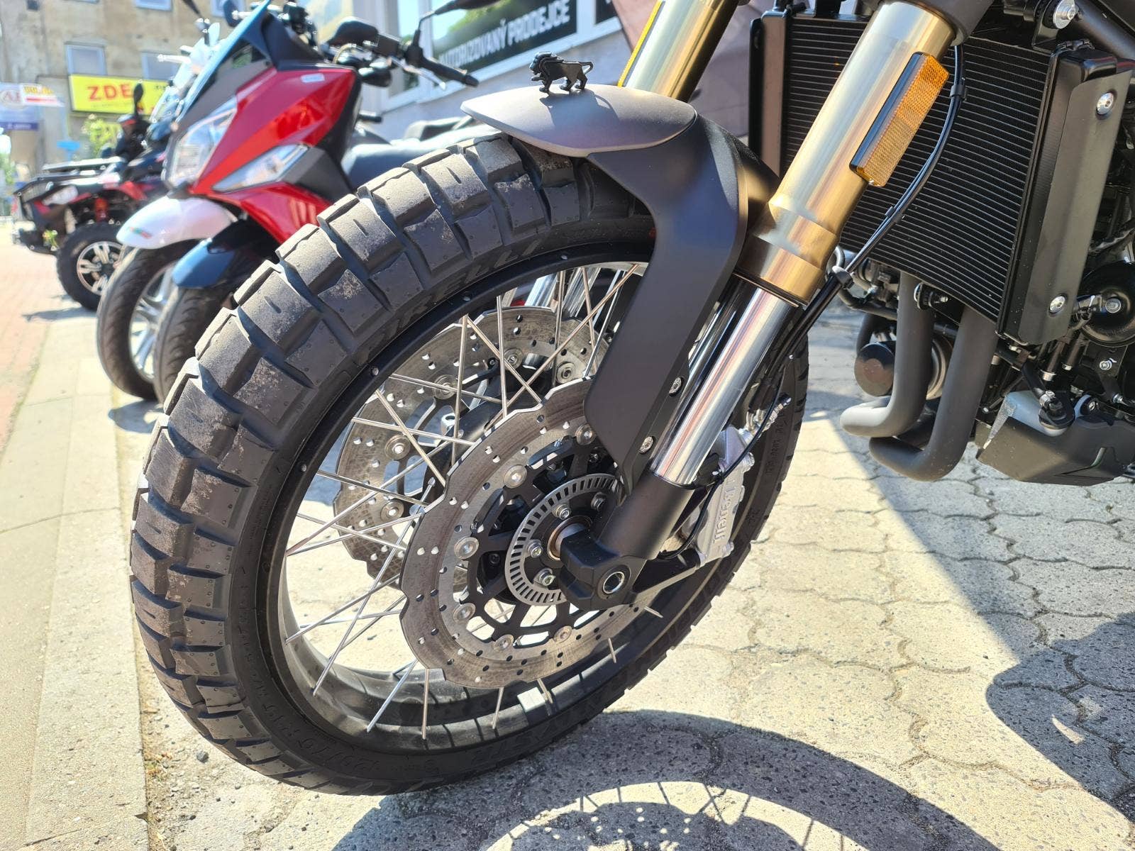 Lvíček / logo továrny Benelli / má zvláštní místo, hrdě stojící na předním blatníku, jako na našich historických motocyklech a ostatních současných strojích řady Leoncino.